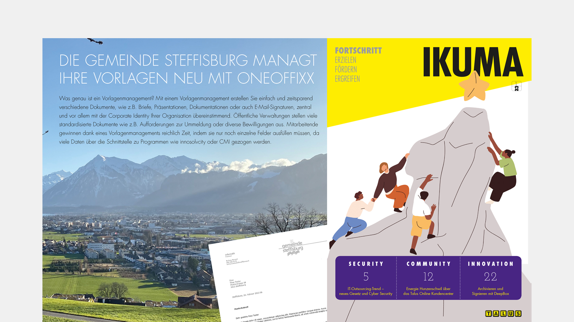 The municipality of Steffisburg shares its success story with the introduction of the template software OneOffixx (previous version of the primedocs template software) in the most recent issue of Talus' customer magazine.